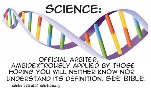 Science: Official arbiter ambidextrously applied by those hoping you will neither know nor understand its definition. See Bible.