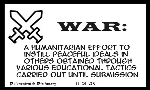War: A humanitarian effort to instill peaceful ideals in others through various educational tactics carried out until submission.