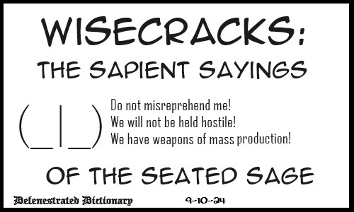 Wisecracks: The sapient sayings of the seated sage.